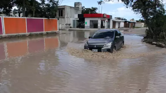 Ubicado en la Supermanzana 223, entre las calles Monte Arabi y Monte Urbina, este bache es un viejo conocido entre los vecinos de, pues, dijeron que a pesar de haber sido reparado en algunas ocasiones, la oquedad vuelve a surgir y con las recientes lluvias se ha llenado de agua hasta tal punto que cubre de banqueta a banqueta toda la calle.