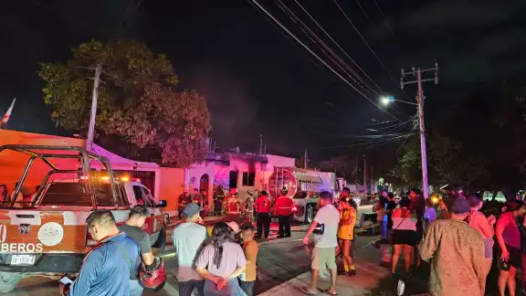 Un incendio de una vivienda en la Supermanzana 227 generó alarma entre los vecinos la noche de este viernes, quienes se movilizaron para tratar de sofocarlo, pero las llamas terminaron por consumir todo en el interior y se extendieron hacia la barda de un domicilio aledaño.
