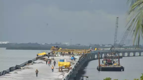 “Así como vamos, si lograremos que el puente pueda ser entregado en enero próximo”, dicen los trabajadores que hacen una breve pausa en su tarea, en un punto donde aún quedan palmeras que los cubre del intenso sol del mediodía.