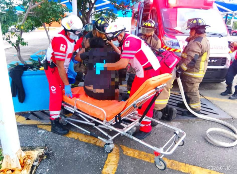 Rescatan bomberos a persona atrapada en una alcantarilla de la avenida Andrés Quintana Roo en Cancún