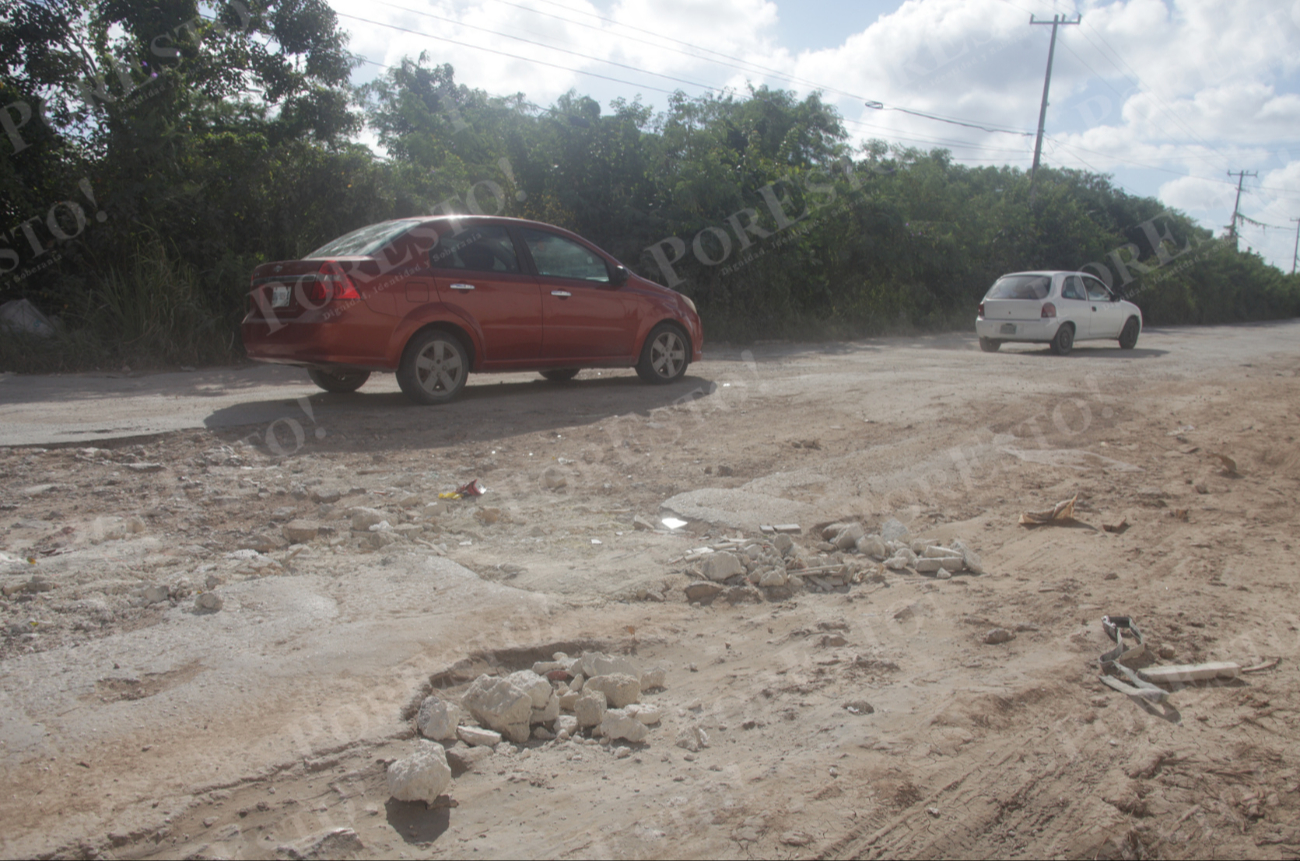 Automovilistas que residen en fraccionamientos cercanos comentaron que la vialidad fue pavimentada de forma provisional por las constructoras, sin aplicar una capa adecuada de asfalto, lo que ha derivado en el deterioro total de la carpeta de rodamiento.