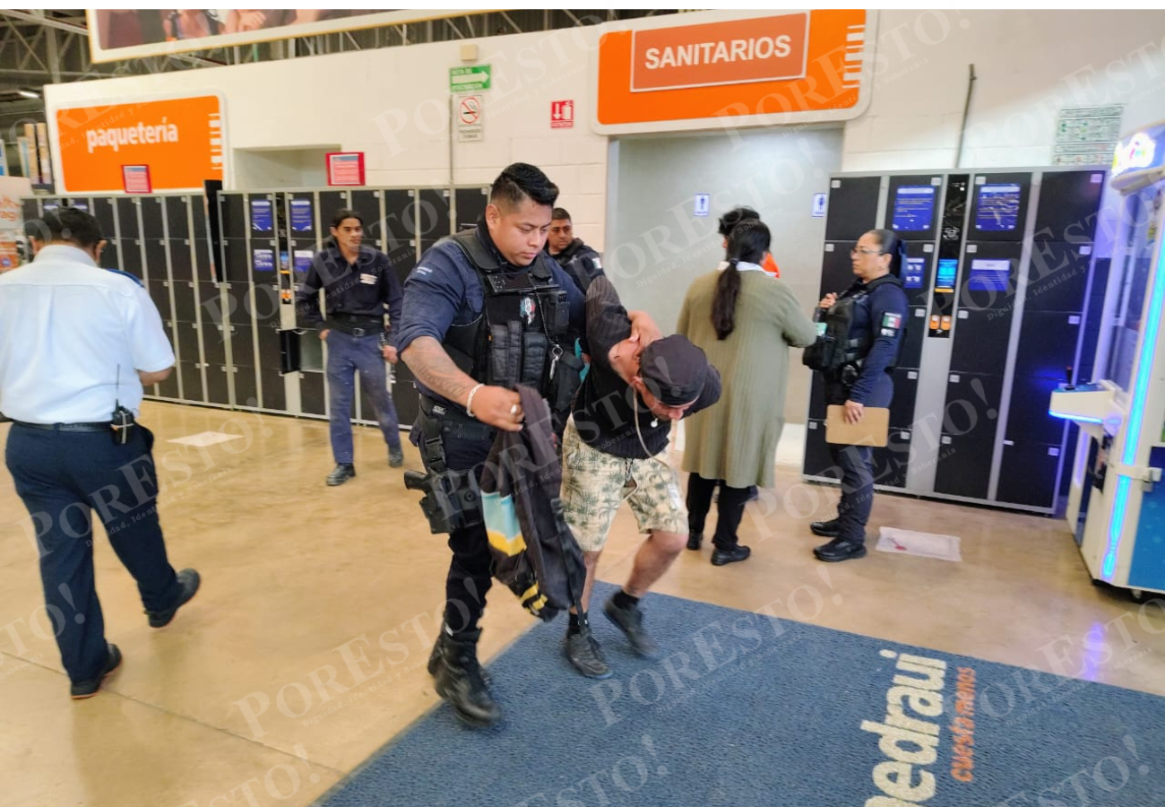 De acuerdo con los primeros reportes, el individuo fue detectado por elementos de seguridad privada y personal del establecimiento cuando intentaba salir del área de ventas con mercancía que no había sido pagada. Tras ser descubierto, fue retenido por los guardias del lugar, quienes lograron asegurar los artículos que presuntamente intentaba llevarse sin efectuar el pago correspondiente.
