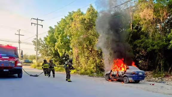 Un vehículo fue consumido por el fuego este 16 de febrero sobre la avenida José López Portillo, en la Supermanzana 104 de Cancún, lo que provocó la movilización de cuerpos de emergencia y afectaciones momentáneas a la circulación en la zona.