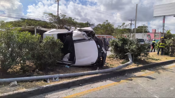 Volcadura tras choque entre tres vehículos deja tres lesionados en la SM 227 de Cancún