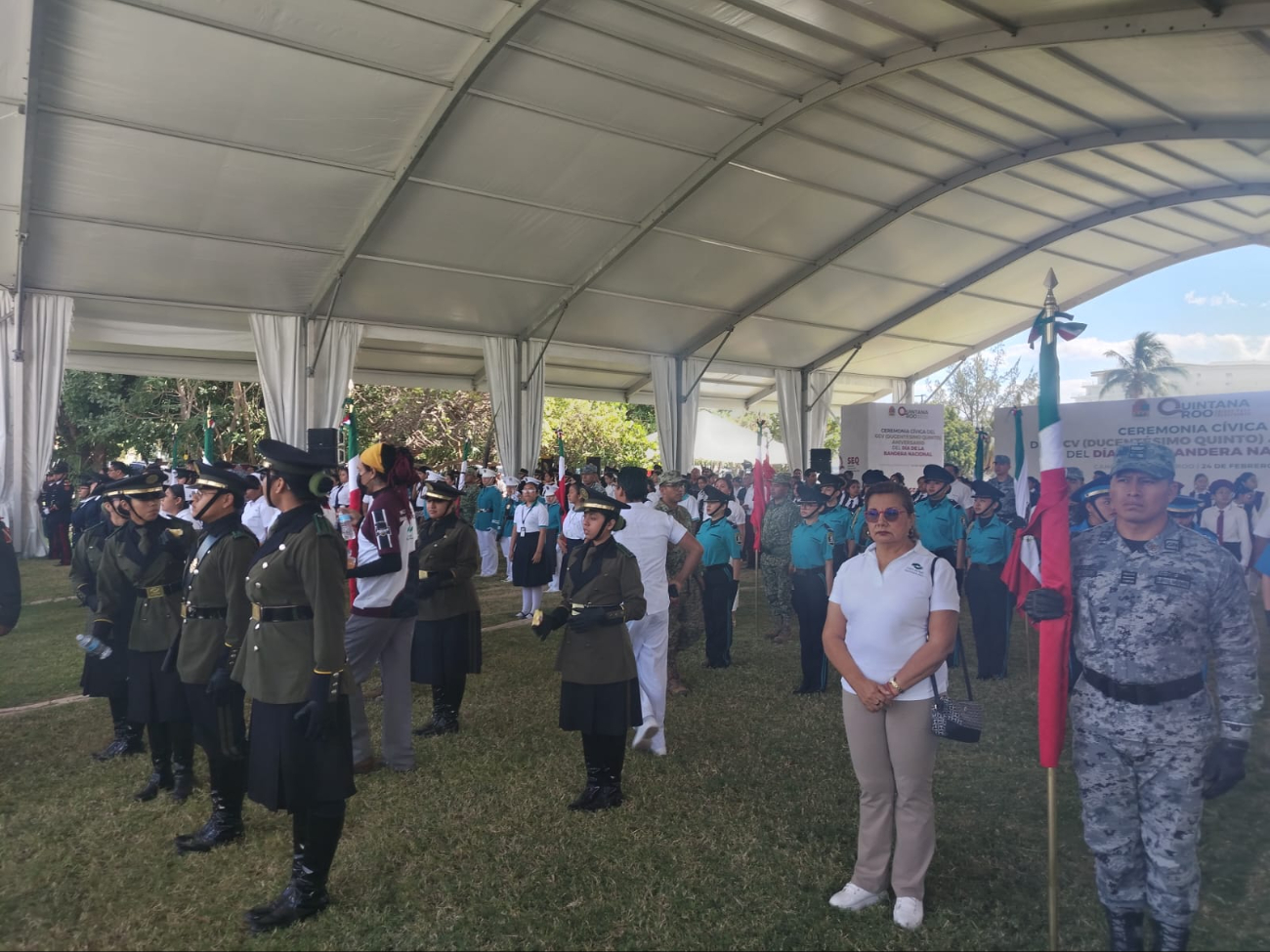 Autoridades militares, navales y civiles de los tres niveles encabezan este día la ceremonia por el día de la bandera. También toman protesta y abanderamiento de escoltas escolares de colegios de Cancún, Isla Mujeres y puerto Morelos.