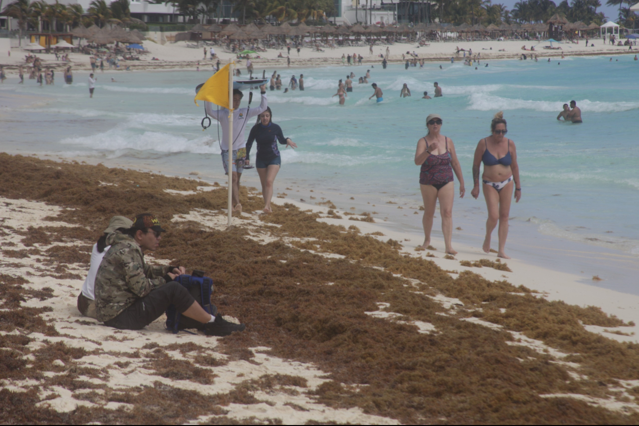 Personal de ZOFEMAT advierte que en las playas de Cancún la presencia puede ser bastante fuerte, por lo que incentivan a los bañistas a no estar cerca de los manchones de sargazo que flotan en el agua a fin de evitar que se produzcan efectos en la piel como sarpullido, comezón y ardores en la piel.
