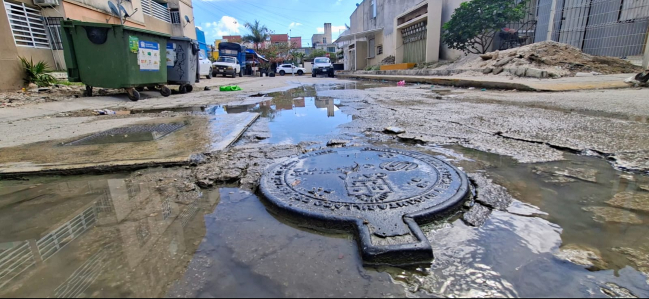 Fugas de agua potable y aguas negras afectan calles de la Región 107 de Cancún