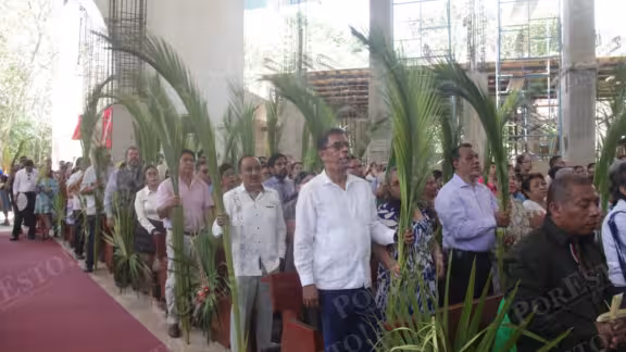 Los católicos se reúnen en las parroquias e iglesias de la ciudad durante este domingo de Ramos, conmemorando la entrada triunfal de Jesús a Jerusalén a través de una profunda mezcla de fe católica y ricas tradiciones indígenas.