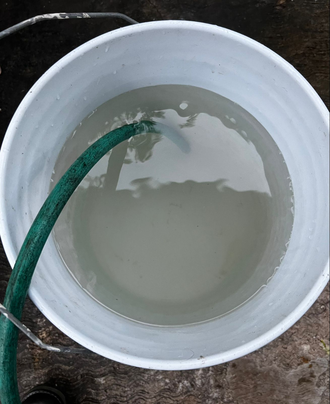 Destacó que el viernes por la tarde, había disminuido la turbiedad del líquido, tal como lo comprobó con un par de cubetas que llenó para atender el baño de la casa.