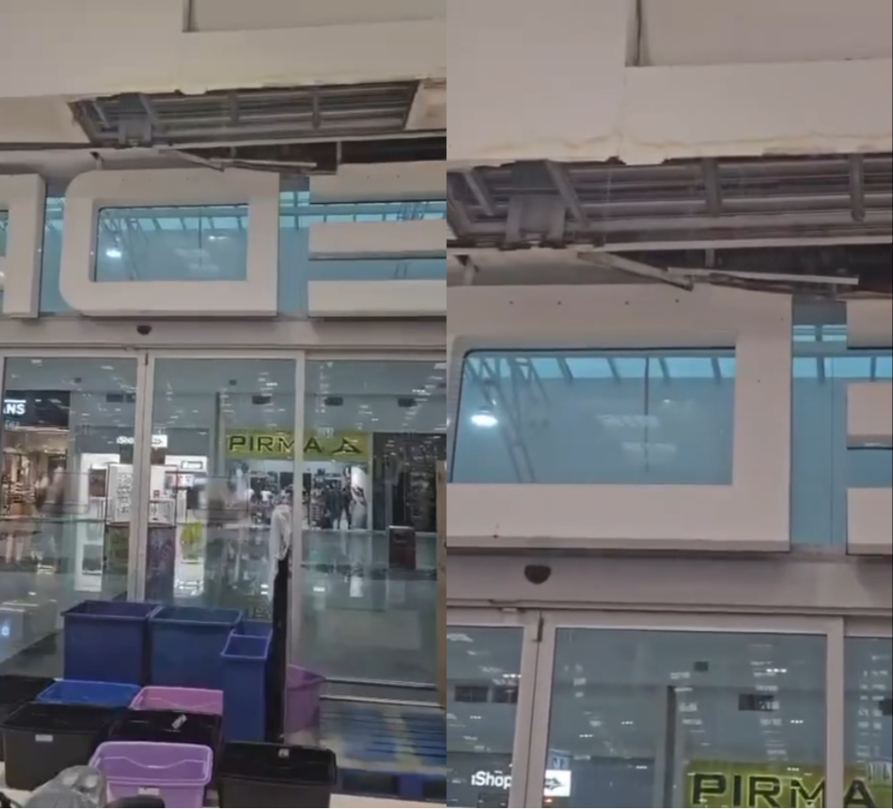 Colapsa parte del techo en Plaza Las Américas de Chetumal tras fuerte tormenta eléctrica / Especial