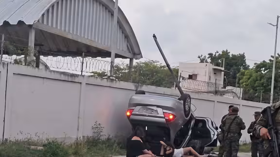 El vehículo terminó sobre su costado a un costado de las instalaciones del 25 Batallón de Infantería de Marina. Impactó contra un poste de alumbrado público, el cual derribó. Personal de la Marina, junto con agentes de tránsito y paramédicos, acudieron al sitio para brindar los primeros auxilios a los ocupantes.