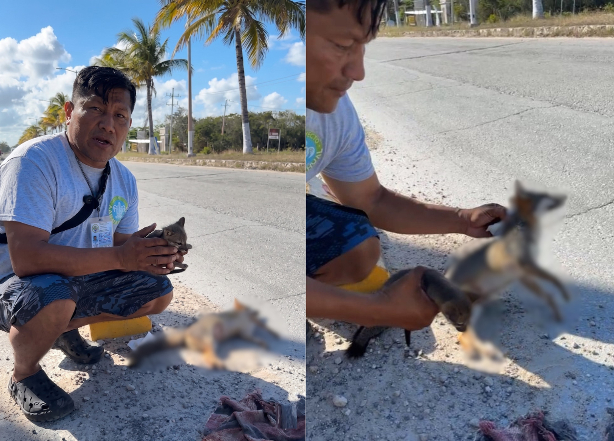 Atropellan a zorro gris en carretera a Mahahual; su cría permanecía junto al cuerpo