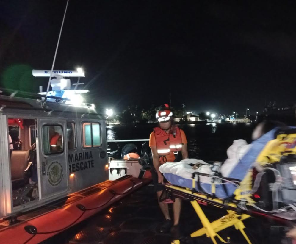 Una embarcación de la Estación Naval de Búsqueda, Rescate y Vigilancia Marítima (ENSAR) de Isla Mujeres brindó apoyo a una paciente del Hospital Comunitario de Isla Mujeres, con embarazo de cinco semanas de gestación que presentaba complicaciones.