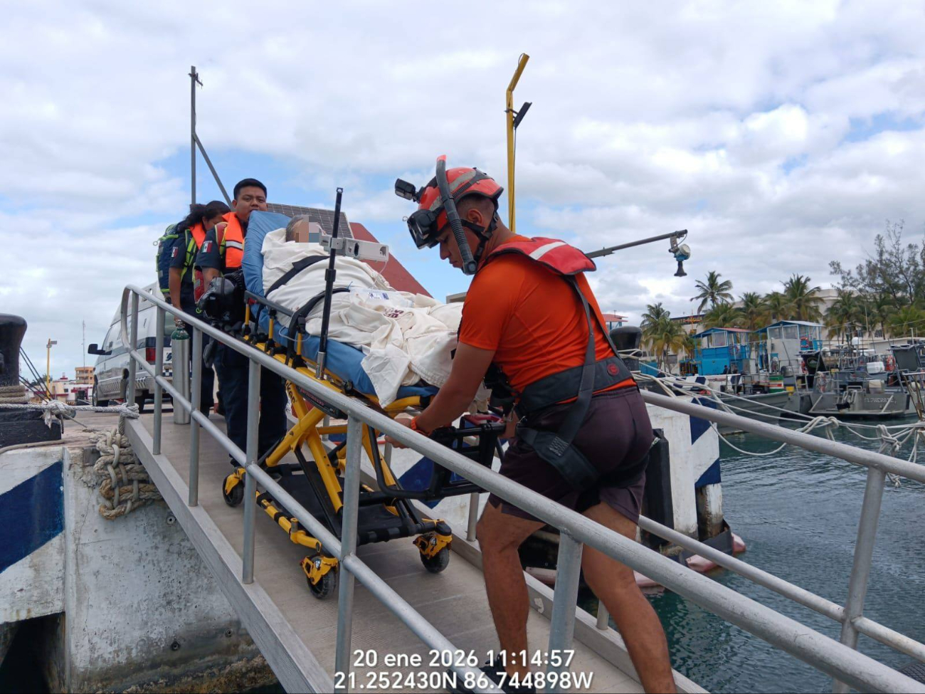 Por lo anterior, se ordenó el zarpe inmediato de una embarcación tipo Defender con personal especializado a bordo, para realizar el traslado de la persona a Puerto Juárez, donde fue recibida por una ambulancia particular para ser trasladada a un nosocomio.