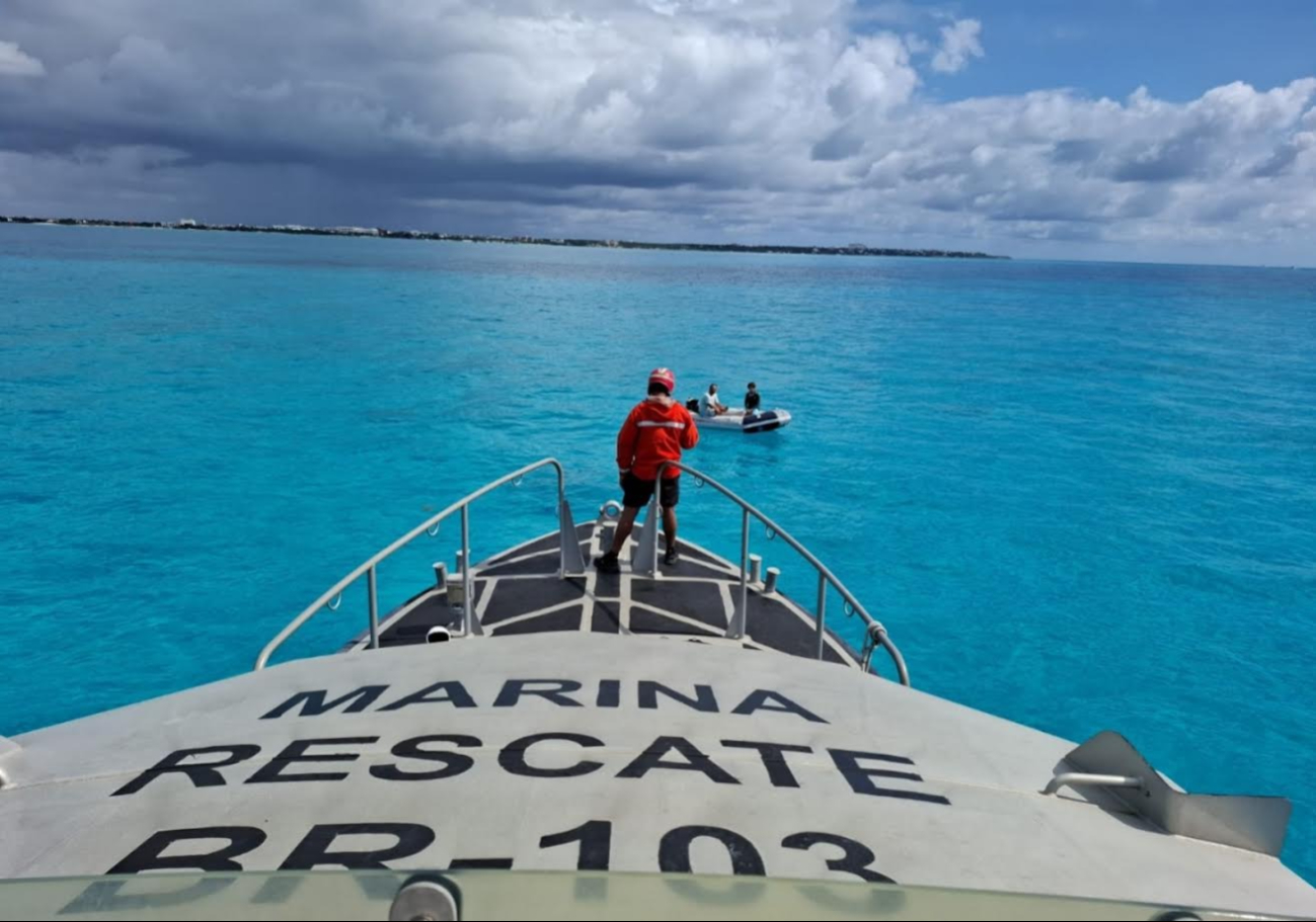 Esta acción, explicó, se llevó a cabo cuando personal de la Estación Naval de Búsqueda, Rescate y Vigilancia Marítima (ENSAR) Isla Mujeres, durante un recorrido de vigilancia marítima, detectó esa embarcación menor a la deriva, debido a fallas en su motor fuera de borda.