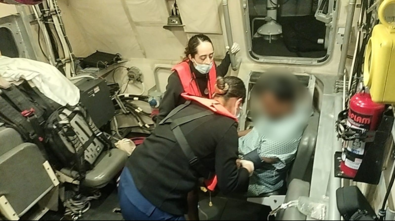 Por lo que se ordenó el zarpe inmediato de una embarcación tipo MLB-103 para dirigirse al crucero y desembarcar al paciente, posteriormente la embarcación tipo Defender BR-01 con personal de sanidad naval especializado a bordo realizó el traslado de la persona a Puerto Juárez.