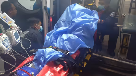 Al lugar arribaron paramédicos de una empresa privada quienes luego de priorizar la integridad de la menor de edad al interior del hospital junto con doctores y estabilizarla lograron subirla a una camilla y posteriormente a la ambulancia la cual se dirigió directamente al aeropuerto internacional de Cancún.