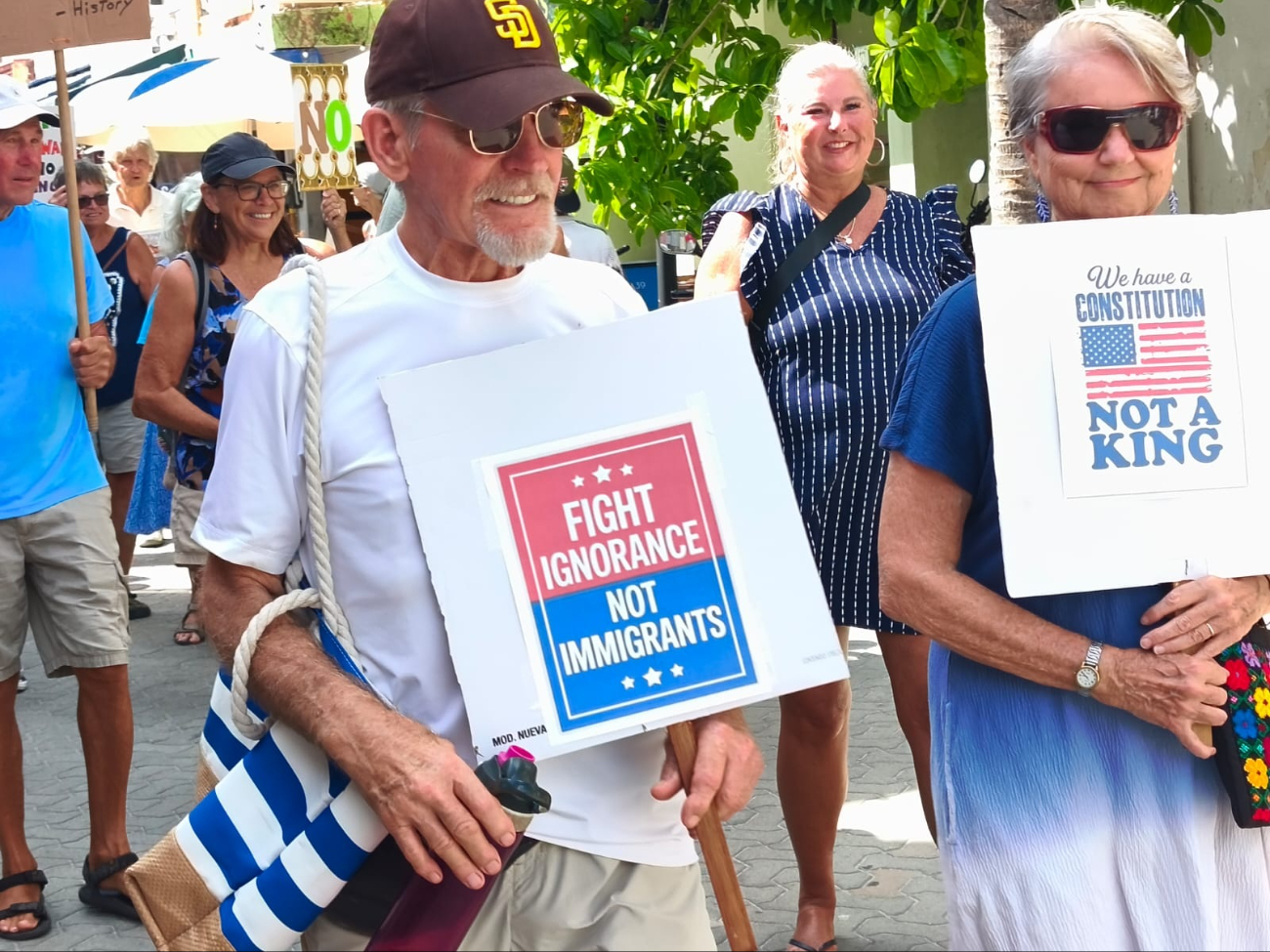 Un grupo de 60 residentes estadounidenses tomó las calles de Isla Mujeres para sumarse al movimiento “No Kings Day” (Día sin reyes), una serie de protestas masivas en Estados Unidos contra el Gobierno de Donald Trump, por lo que consideran una política autoritaria y represiva, así como su postura internacional frente a otras naciones.