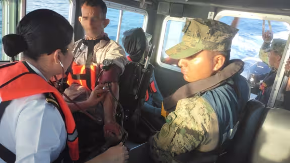 El personal de rescate de la Novena Región Naval rescató a 9 indocumentados cubanos en una embarcación menor hechiza en las inmediaciones de Isla Mujeres, luego que un barco carguero los auxiliara.