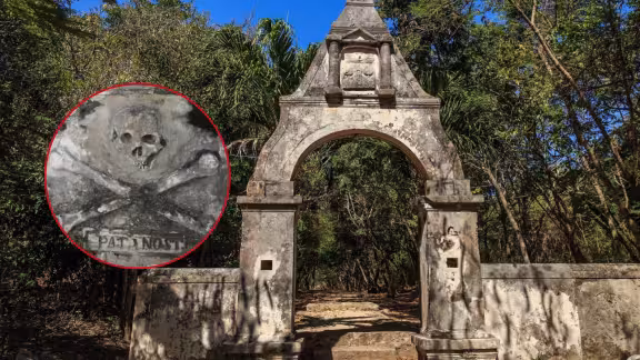 Su tumba cuenta con una peculiar decoración del cráneo de una calavera y dos huesos, que recuerdan sus tiempos de contrabando y piratería.
