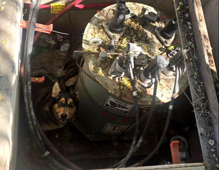 Dos perros de raza husky fueron rescatados con vida, luego de quedar atrapados dentro de un registro de la Comisión Federal de Electricidad (CFE) en el fraccionamiento Villas del Sol, de acuerdo con información recabada.