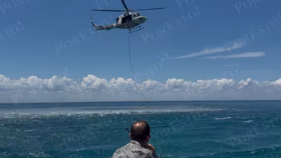 El proceso no concluye en la inmersión. En otra fase clave, los participantes ejecutan maniobras de extracción vertical. Sujetos a arneses, son izados desde el agua hacia un helicóptero en movimiento, en una operación que exige coordinación absoluta entre aire y superficie. El tiempo de reacción es determinante, especialmente en contextos donde la permanencia en el sitio representa un riesgo.