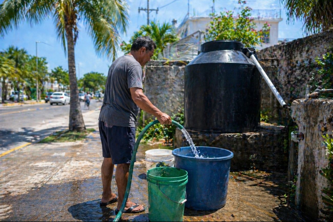 Debido a la combinación de altas temperaturas y mayor actividad turística, el consumo de agua en Cozumel ha registrado un incremento durante las últimas semanas, lo que ha presionado la capacidad del sistema de distribución, particularmente en zonas a donde llega con menor fuerza, señalaron habitantes y trabajadores.
