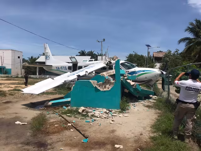 Holbox.- Hace unos momentos, una avioneta de la empresa AX de la ciudad de Cancún se estrelló con los vestidores del campo de softbol de la isla de Holbox.