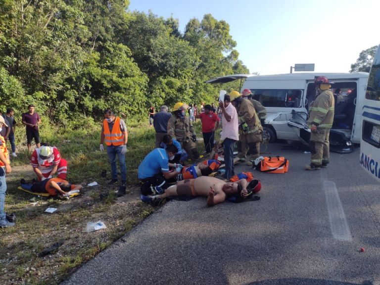 Durante la mañana de este domingo, una combi que transportaba a trabajadores del supermercado Chedraui chocó en la carretera federal 307, cerca del entronque con Chumpón, lo que causó la muerte de cinco personas, además de dejar a varios heridos.