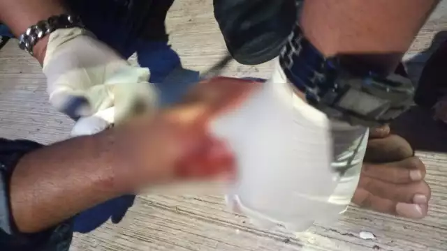 El hombre presentó una herida de bala en el dorso del pie izquierdo, que fue de entrada sin salida. Elementos paramédicos de la UREM, arribaron al lugar, para atender al lesionado, para posteriormente trasladarlo al nosocomio.