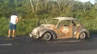 Vochito termina calcinado tras quemarse en la carretera Mérida-Cancún