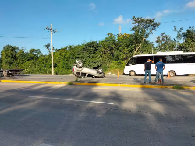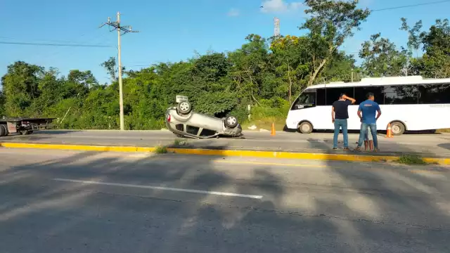 El conductor viajaba de norte a sur con rumbo a la ciudad de Tulum cuando se quedó dormido justo al salir del filtro de seguridad por lo que el auto siguió de largo y se fue contra el camellón para que la unidad particular quedará volteada.
