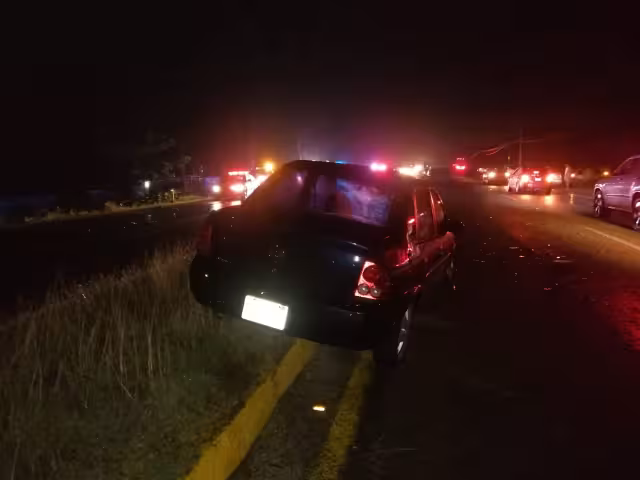 El derrotero del automóvil compacto siguió, se montó en el camellón central de la carretera y quedó la parte delantera del vehículo asomada en el carril contrario.