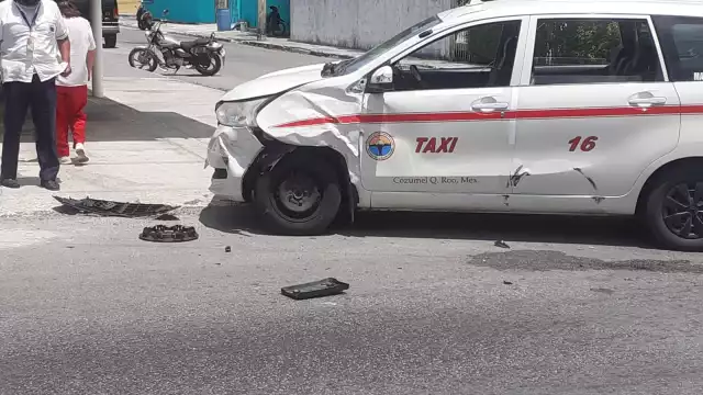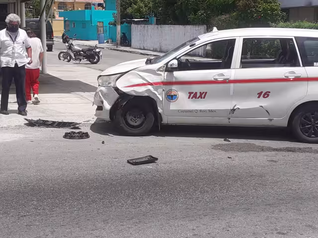 Una pareja que conducía un Jeep provoco aparatoso accidente al volarse su alto de Disco Fijo en la esquina de la Calle Felipe Ángeles con 3 Sur de la Isla de Cozumel embistiendo a un Taxi con el número 16 económico que circulaba en preferencia de norte a sur sobre la Felipe Ángeles el cual conducido por un joven ruletero.
