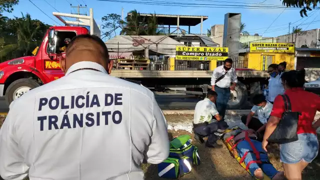 Los hechos ocurrieron al cruce de las avenidas 135 con Andrés Quintana Roo, cuando el motociclista quiso ganarle el paso a la unidad de transporte y debido a la velocidad con la cual ambos conducían, no pudieron evitar el fuerte impacto el cual dejó al conductor de la unidad de dos ruedas tendido sobre la cinta asfáltica, conductores testigos y personas que transitaban por el lugar, lo apoyaron y subieron al camellón central mientras llegaba la unidad médica.