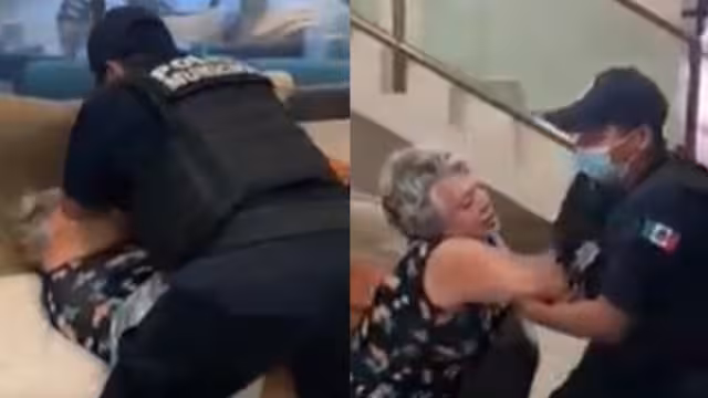 En la videograbación se ve a un policía que intenta desalojar a una mujer con el uso excesivo de la fuerza del interior de la vivienda citada, pese a que la fémina se encuentra en mal estado de salud.