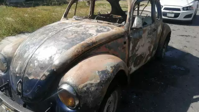 El vochito quedo estacionado y completamente calcinados, quedando reducido a ferros retorcidos.