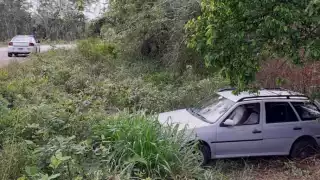 Vehículo sale de la carretera tras perder el control en tramo José María Morelos-Pokyuc