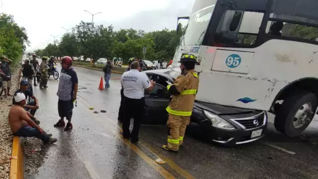 Un operador de la empresa Transportes Urbanos del Carmen (TUCSA) impactó a una automovilista y posteriormente un motociclista en la avenida CTM casi en su cruce con la avenida Lilis, la mañana de este sábado.