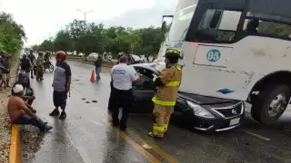 Camión choca contra un coche en Playa del Carmen; deja dos lesionados