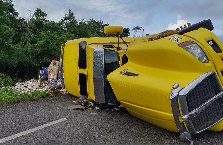 El vehículo accidentado se trata de la marca Kenworth color amarillo y con placas de circulación 77AU-7F del servicio público federal, mismo que era conducido de sur a norte, rumbo a Tulum cuando aparentemente el operador dormitó, lo que provocó que saliera parcialmente de la carretera y al realizar una maniobra para reincorporarse, termino volcando el tractocamión sobre la cinta de rodamiento y la carga quedó regada a un costado de la vía, y que fue objeto de rapiña.