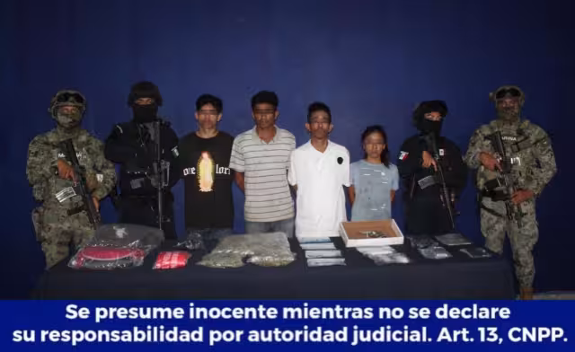 Luis “N”, Edgar “N”, Itzel “N” y Brayan “N” fueron capturados por elementos policiacos por su presunta participación en delitos contra la salud, luego de ser sorprendidos manipulando dosis de droga lista para su venta al menudeo.