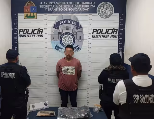En este sentido, esta mañana presentan a Jesús “N”, de 27 años de edad y originario del estado de Tabasco, como la persona asegurada en posesión de un arma de fuego tras el reporte de detonaciones en la Quinta Avenida.