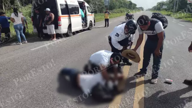 Un ciclista en visible estado de ebriedad que circulaba de manera temeraria sobre la carretera federal 307, termino siendo arrollado por una combi de pasaje. El ciclista resultó seriamente lesionadoy luego de ser atendido por paramédicos de la Cruz Roja fue trasladado al hospital general de esta ciudad para su atención médica.