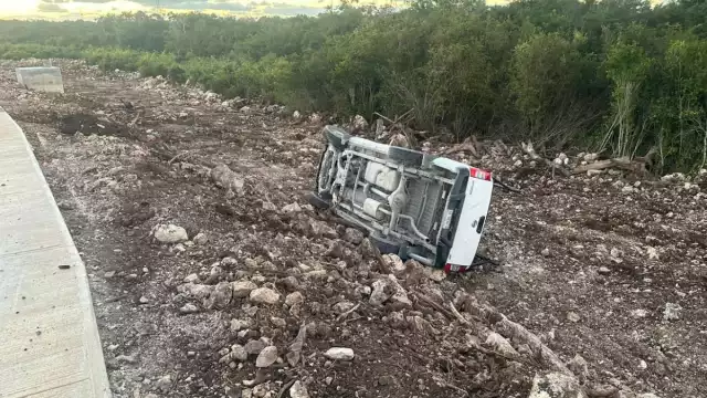 Conductor pierde el control y vuelca en una curva de Cancún