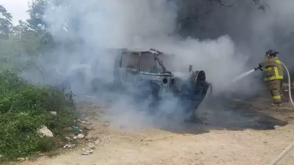 Camioneta de lujo termina completamente calcinada tras sufrir un incendio en Polígono Sur de Cancún