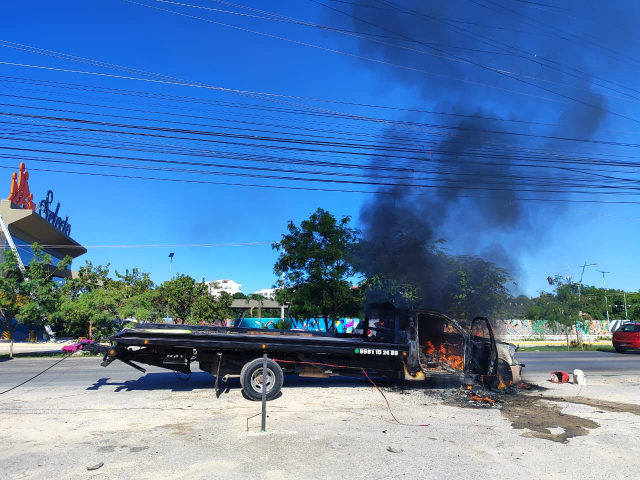 Un incidente generó alarma entre automovilistas y transeúntes la mañana de este miércoles, luego de que una grúa que circulaba sobre la avenida Huayacán se incendiara repentinamente mientras se encontraba en movimiento. El hecho ocurrió a un costado de un restaurante y frente al nuevo supermercado Chedraui, en el carril con dirección hacia la avenida Colegios, lo que provocó una rápida movilización de los cuerpos de emergencia.