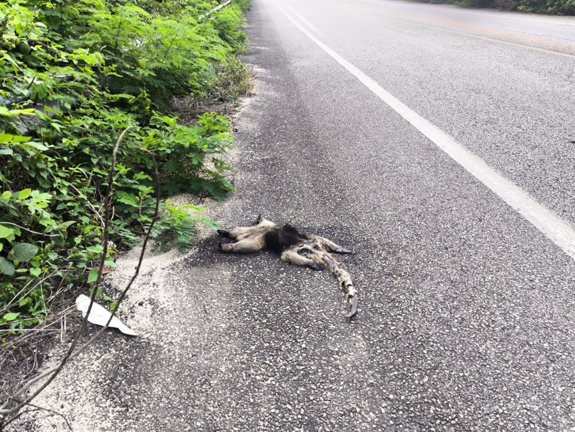 Un oso hormiguero de los que se llegan a ver muy ocasionalmente en esta zona, fue arrollado sobre la carretera vecinal José María Morelos-Naranjal por una camioneta.