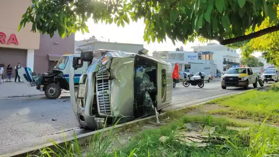 De acuerdo con información recabada en el lugar, el conductor perdió el control de la unidad y se impactó contra la parte frontal izquierda de un camión repartidor de productos lácteos, que realizaba una maniobra para ingresar al estacionamiento de una tienda de conveniencia.