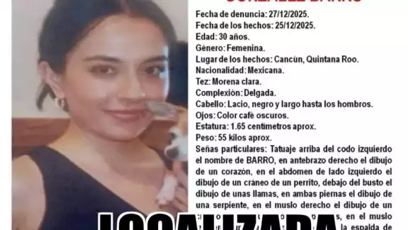 Fue en la ciudad de Cancún en donde se reportó la desaparición de Nataly Montserrat González Barro, una joven de 30 años quien fue vista por última vez la noche del 25 de diciembre.